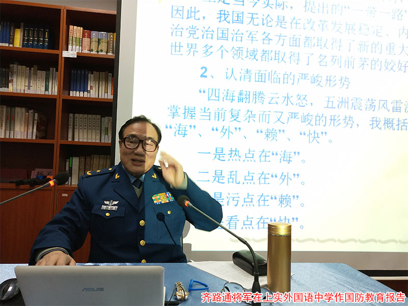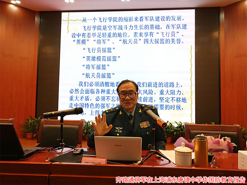 元月4日,学院又邀请齐路通将军为上海浦东唐镇中学和上实剑桥外国语中学浦东分校的师生们作国防教育报告。