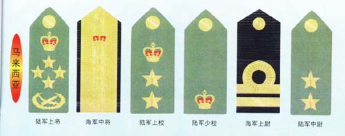 另一种是以欧洲传统军衔制为模式的"西方型"军衔。实行这种军衔制的国家有印度、巴基斯坦、孟加拉国、马来西亚、缅甸、尼泊尔、阿富汗、韩国、菲律宾等。南亚次大陆上印度,曾是英国的殖民地和其他"英联邦"国家一样,其军衔制度以英国军衔为蓝本。1947年6月印、巴分治,巴基斯坦从印度独立出来。1971年3月东巴基斯坦宣布为自主独立的孟加拉共和国。由于历史的渊源,巴基斯坦和孟加拉国的军衔制均是从印度脱胎而来,属英式的"西方型"军衔。历史上曾沦为英国的殖民地的马来西亚、缅甸、尼泊尔、阿富汗等国,也都实行"西方型"。韩国和菲律宾则是第二次世界大战后受美军影响,实行美式"西方型"军衔。"西方型"军衔的特点是:设准将,不设大将、大尉,有些国家设元帅,兵的衔级较多。英式军衔和美式军衔的主要区别在于准将这一级位置,从各国军衔标志(肩章)来看,印、巴、孟等国的军衔图案和标识方法和英军相近,"准将"这一级显然是列入校官等级中的,翻译成"大校"似乎更合理;而韩、菲等国将官的标志则与美国相同,准将为一颗"将军星",是列入将官等级的。
