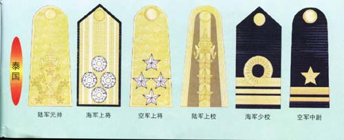 实行这类军衔制的亚洲国家目前还有泰国。韩国、菲律宾也曾实行这种军衔制。但菲、泰两国不完全是受日本的影响。16世纪以后,菲律宾和泰国曾先后沦为西班牙和葡萄牙的殖民地。位于欧洲西南角伊比利亚半岛上的西班牙和葡萄牙,其军衔等级与英、法等其他欧洲国家不同,军官军衔为3等9级制,不设准将。西、葡两国的殖民地国家也多实行这种军衔制,如亚洲的菲律宾和泰国,拉丁美洲的巴西、阿根廷、哥伦比亚、墨西哥等。