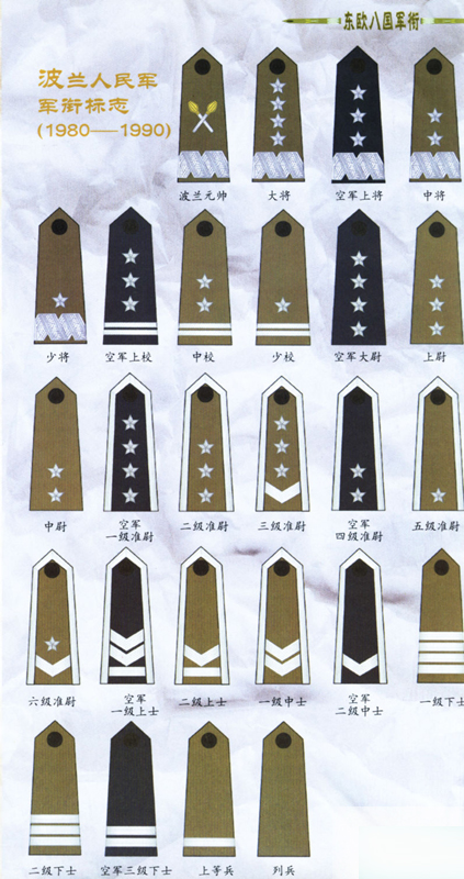 80年代初,波兰政府颁布了新的武装力量军衔表。
