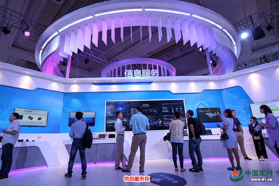 据了解,从今年起,活动将由两年举办一次调整改为一年举办一次,并且将按照五年办一次综合展、其他年份办专题展的思路组织实施。本次活动以“深入贯彻军民融合发展战略思想,加快推进国家和军队信息化建设”为主题,由室内展示、网上展示和专题论坛三部分组成。其中,室内展区设置综合厅和展望厅2个综合类展区,另外还有自主可控、时空基准、先进感知、系统控制、网络通信与信息安全、信息服务、信息展现、人工智能8个主题展区。那么都有哪些高科技亮相呢?请随记者的镜头一起去8个主题展区一探究竟。(中国军网记者冯开华 摄影报道)