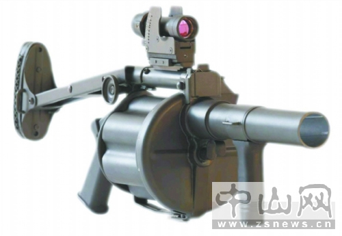 M32源于南非的MGL转轮式榴弹发射器。MGL看起来就是一支特大号的转轮枪,只是实心的手枪子弹换成了40毫米的爆炸榴弹。不过转动转轮的力量不是来源于手指,而是来源于事先上好的发条。