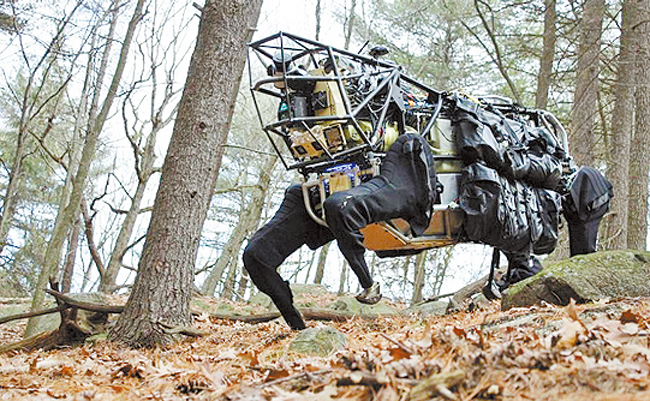 9月11日,美国军方向外界展示了最新款的机器狗,它可以携带武器装备在崎岖的山路上慢跑,这一功能与诸葛亮的木牛流马十分相似。这款机器狗名叫LS3,绰号“阿尔法狗”,是一种四腿机器人,能够站立,可在搭载400磅(约合181千克)重物情况下连续行走20英里(约合32公里)。