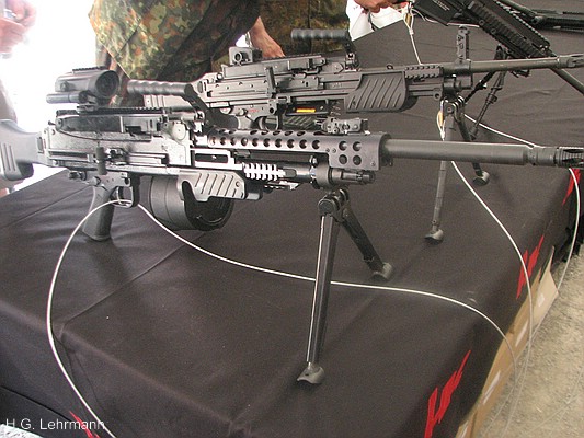 较早前有传闻指HK会在MG4的基础上研制MG3的替代品,在2010年哈默尔堡举行的“步兵开放日”上,突然展出了名为HK121的7.62mm机枪。将来如果获得得德军的采用,我猜它可能会被命名为MG5吧。