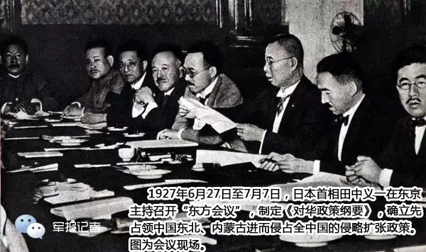 1927年6月27日至7月7日,日本内阁在东京召开“东方会议”,制订了《对华政策纲领》,露骨地声称中国东北“在(日本)国防和国民的生存上有着重大的利害关系”。同年7月,内阁首相、陆军大将田中义一向天皇奏呈《帝国对满蒙之积极根本政策》(即臭名昭著的“田中奏折”),公然宣称:“惟欲征服支那,必先征服满蒙,惟欲征服世界,必先 征服支那。倘支那完全可被我国征服,其他如小中细亚及印度、南洋等异服之族,必畏我敬我而降于我。”,从而确立了以“满蒙”为侵略基地的狂妄战略。