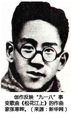 “九一八事变”后,东北锦绣河山沦陷敌手。东北军官兵,东北百姓,携妻带子被迫流亡关内。此时,出现了一首歌曲,它还没有出版,就在民众及东北军中传唱,而且很快传遍大江南北。它不仅唱出3000万东北同胞悲惨遭遇和悲愤之情,更唱出了全国军民一触即发的抗战呼号。这首歌就是《松花江上》。