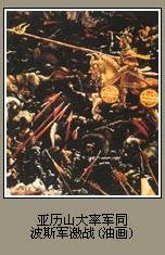 。在粟特遇到当地居民激烈反抗,其中尤以地方贵族斯皮泰门领导的起义威胁最大。起义军曾一度收复首都马拉坎达(今乌兹别克斯坦撒马尔罕),给远征军以沉重打击。亚历山大在中亚细亚征战两年余,方将起义军镇压下去。前327年夏,他为富庶的印度河流域所吸引,离开巴克特里亚,率兵约3万人沿考芬河(今喀布尔河)经开伯尔山口侵入印度河上游地区。前326年4月,远征军由布克法拉城抵达希达斯佩斯河(今杰赫勒姆河),与波鲁斯王国军队隔岸对峙。亚历山大率军渡河作战,消灭波鲁斯步兵近2万、骑兵3000,迫使波鲁斯国王投降。远征军继续东进,抵达希发西斯河畔。此时,军中疫病流行,官兵厌战情绪增长,亚历山大被迫于前326年10月决定停止东征并撤军。他分兵水旱两路沿印度河顺流而下,在印度河口附近再兵分三路:海路经阿拉伯海入波斯湾至幼发拉底河口(希腊人从未走过的新航线);陆路一支经印度洋沿岸西行,由亚历山大亲率;另一支北上阿拉霍西亚,然后向西与亚历山大会合。前324年春,亚历山大返抵巴比伦,东征结束。 亚历山大东征是一场掠夺性战争。远征军连续作战10年,行程万余里,进行上百次强渡江河、围城攻坚以及山地、平原地和沙漠地作战,建立了西起巴尔干半岛、尼罗河,东至印度河的庞大亚历山大帝国。作战中,亚历山大正确选择战略方向,合理运用马其顿方阵战术,善于组织步兵与骑兵、陆军与海军协同作战,军事手段和政治手段并用等,在世界军事学术史上留下光辉一页。亚历山大东征给当地人民造成深重灾难,但客观上也促进了希腊与亚非诸国的经济和文化交流,在历史上具有深远影响。