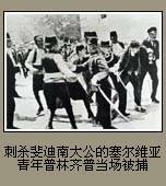 年,俄国和法国签署与之相对抗的军事同盟条约;英国为对付德国的挑战先后于1904年和1907年与法、俄签署协定,形成英法俄三国协约,简称协约国。同盟国和协约国两大军事集团形成后,加紧扩军备战,争夺战略要地。巴尔干地区和地中海沿岸成为争夺的焦点。1905~1913年,双方的争夺引发一系列严重的国际危机,并导致意土战争和巴尔干战争的爆发。各国统治集团为摆脱周期性经济危机,转移国内人民视线,迫切希望从战争中寻求出路。 1914年6月28日,奥匈帝国皇储弗兰茨·斐迪南大公在波斯尼亚首府萨拉热窝遇刺身亡,成为战争爆发的导火线。7月28日,奥匈在德国怂恿下对塞尔维亚宣战,炮击塞首都贝尔格莱德,第一次世界大战正式爆发。30日,俄国宣布总动员,声援塞尔维亚。8月1日,德国对俄宣战,法国宣布总动员。3日,德国对法宣战。4日,比利时拒绝德军过境,德国对比宣战,英国对德宣战。6日,奥匈对俄宣战,塞尔维亚对德宣战。英、法分别于12日和13日对奥匈宣战。意大利宣布中立。至此,战争全面展开。 战争准备和力量对比 为彻底战胜对方,各国加紧战争准备,增加军费开支。1908~1913年5年间与