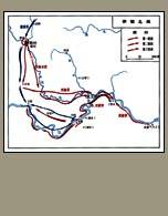 三国形成时期,孙权、刘备联军于汉献帝建安十三年(208)在长江赤壁(今湖北蒲圻西北,一说今嘉鱼东北)一带大败曹操军队,奠定三国鼎立基础的著名决战。 曹操基本统一北方后,作玄武池训练水兵,并对可能动乱的关中地区采取措施,随即于建安十三年七月出兵十多万南征荆州(约今湖北、湖南),欲一统南北。时孙权已自江东统军攻克夏口(今武汉境),打开了西入荆州的门户,正相机吞并荆、益州(治成都),再向北发展;而依附荆州牧刘表的刘备,“三顾茅庐”得诸葛亮为谋士,以其隆中对策,制定先占荆、益,联合孙权,进图中原的策略,并在樊城大练水陆军。 曹操采用侍中、尚书令荀之计,领大军直出叶县、宛城(今河南南阳),另遣轻骑袭襄阳(今属湖北)。八月,刘表病亡,曹军放慢进军速度,施加军威,欲不战而得荆州。时孙权派鲁肃以吊丧为名,往观形势,拉拢刘备,团结刘表旧将,对付曹操。鲁肃在途中得知曹操进军荆州的消息,乃昼夜兼程赶向襄阳。刘表次子刘琮继任荆州牧,遣使投降曹操,迎接曹军。正加紧准备迎敌的刘备得知刘琮投降时,曹军已过宛城。 九月,曹操至新野(今属河南)接受刘琮投降后,逼向荆州腹地。刘备为避曹军锐气,与诸葛亮、徐庶等率十余万军民仓促南撤,退向战略要地江陵(今属湖北荆沙),并令关羽领万余水兵顺汉水、溯江水会师。刘备至当阳长坂(今当阳境),与鲁肃相见,接受其劝说,愿率军转东,向孙权靠近。时曹操已过襄阳,恐刘备先占江陵,亲率精骑5000,昼夜行300多里,追上刘备,将其击败,并获徐庶之母,迫徐庶来归。张飞率20骑断后,拆长坂桥,勒马横矛,令曹军疑惧,刘备方得脱险,东奔汉津(今钟祥境),恰遇关羽船队,刘表长子、江夏太守刘琦也领万余人接应。刘备军顺汉水至夏口,先遣诸葛亮至柴桑(今江西九江西南)见孙权,共谋抗曹,自率军屯樊口(今湖北鄂州境)。 孙权见刘备新败,又慑于号称80万的曹军声威,对联刘举棋不定。诸葛亮与鲁肃、周瑜等精辟分析形势,指出曹军不过20余万,且有后方不安、远道劳师、水土不服、短于水战等弱点,坚定了孙权抗曹决心。孙权不顾主降派张昭等反对,命周瑜、程普为左右督,鲁肃为赞军校尉,率3万精锐水兵,与刘备合军共约5万,溯江水而上,进驻夏口。 曹操乘胜取江陵后,又以刘表大将文聘为江夏太守,仍统本部兵,镇守汉川(今江汉平原)。益州牧刘璋也遣兵给曹操补军,开始向朝廷交纳贡赋。曹操更加骄傲轻敌,不听谋臣贾诩暂缓东下的劝告,送信恐吓孙权,声称要决战吴地。冬,亲统军顺长江水陆并进。 孙刘联军在夏口部署后,溯江迎击曹军,遇于赤壁。曹军步骑面对大江,失去威势,新改编及荆州新附水兵,战斗力差,又逢疾疫流行,以致初战失利,慌忙退向北岸,屯兵乌林(今湖北洪湖境),与联军隔江对峙。 曹操下令将战船相连,减弱了风浪颠簸,利于北方籍兵士上船,欲加紧演练,待机攻战。周瑜鉴于敌众己寡,久持不利,决意寻机速战。部将黄盖针对曹军“连环船”的弱点,建议火攻,得到赞许。黄盖立即遣人送伪降书给曹操,随后带船数十艘出发,前面10艘满载浸油的干柴草,以布遮掩,插上与曹操约定的旗号,并系轻快小艇于船后,顺东南风驶向乌林。接近对岸时,戒备松懈的曹军皆争相观看黄盖来降。此时,黄盖下令点燃柴草,各自换乘小艇退走。火船乘风闯入曹军船阵,顿时一片火海,迅速延及岸边营屯。联军乘势攻击,曹军伤亡惨重。曹操深知已不能挽回败局,下令烧余船,引军退走。 联军水陆并进,追击曹军。曹操引军离开江岸,取捷径往江陵,经华容道(今潜江南)遇泥泞,垫草过骑,得以脱逃。曹操留曹仁守江陵,满宠屯当阳,自还北方。 周瑜等与曹仁隔江对峙,并遣甘宁攻夷陵(今宜昌境)。曹仁分兵围甘宁。周瑜率军往救,大破曹军,后还军渡江屯北岸,继续与曹仁对峙。刘备自江陵回师夏口后,溯汉水欲迂回曹仁后方。曹仁自知再难相持,次年被迫撤退。 赤壁大战后,刘备乘胜取得武陵、长沙、桂阳、零陵等四郡,次年又任荆州牧,奠定了壮大发展、进据益州的基础。曹操吸取失败教训,大兴水军,进控江淮,与孙权对峙。孙权为抗曹,继续与刘备联盟,任其在荆州发展。三国鼎立格局逐渐形成。 赤壁之战,曹操自负轻敌,指挥失误,加之水军不强,终致战败。孙权、刘备在强敌面前,冷静分析形势,结盟抗战,扬水战之长,巧用火攻,创造了中国军事史上以弱胜强的著名战例。(任昭坤) |