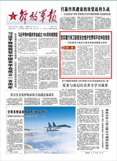 忠实履行保卫国家安全维护世界和平的神圣使命——写在第四个南京大屠杀死难者国家公祭日