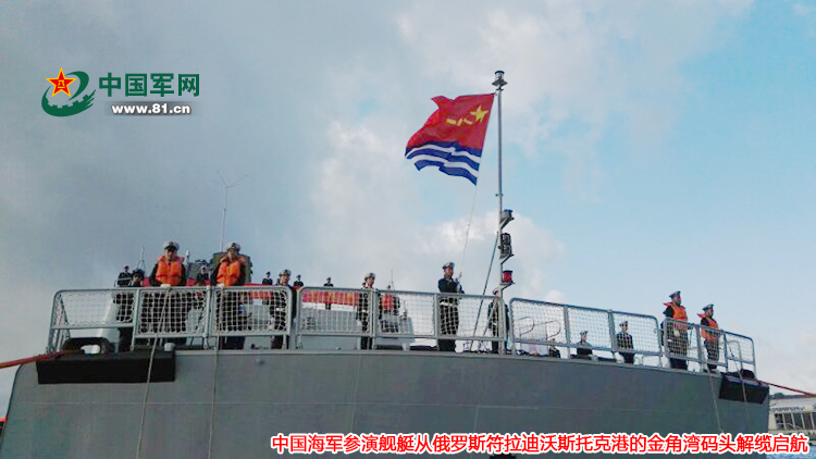当地时间9月22日上午,参加“海上联合-2017”第二阶段演习任务的中国海军参演舰艇从俄罗斯符拉迪沃斯托克港的金角湾码头解缆启航,同俄方舰艇一道前往演习海域。这标志着此次中俄联合军事演习港岸准备阶段圆满结束,正式进入海上实兵演练阶段。