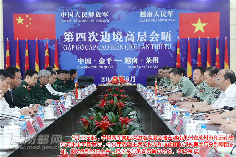 9月23日至24日,中央军委副主席范长龙和越南国防部长吴春历分别率团,先后在越南莱州省莱州市和云南省红河州金平县举行两军第四次边境高层会晤。