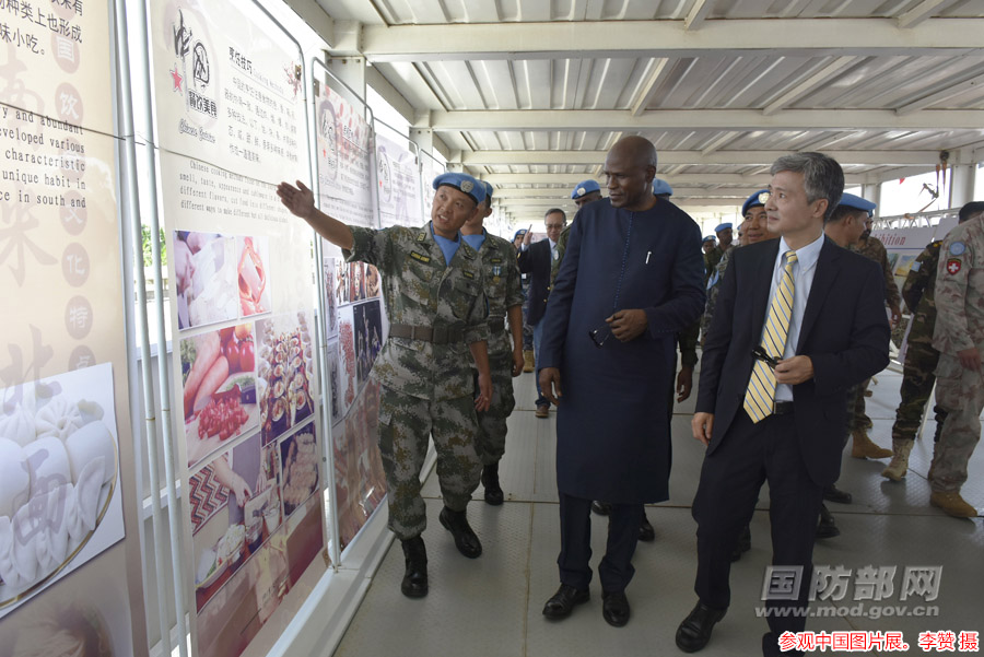 授勋结束后,舒马赫与中国驻南苏丹大使何向东参观了魅力中国图片展和维和步兵营执行任务图片展。