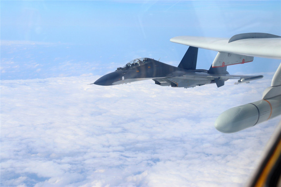 12月9日,中国空军多型战机前出岛链成体系远洋训练。