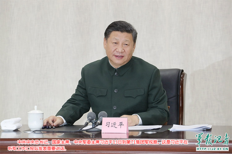军报记者江苏徐州12月14日电(记者王士彬、代烽) 中共中央总书记、国家主席、中央军委主席习近平13日到第71集团军视察。他强调,全军要认真学习贯彻党的十九大精神,深入学习贯彻新时代党的强军思想,贯彻新形势下军事战略方针,坚持政治建军、改革强军、科技兴军、依法治军,聚焦备战打仗,把握集团军建设管理和作战运用特点规律,扎实推进转型建设,全面提高打赢能力,履行好党和人民赋予的新时代使命任务。