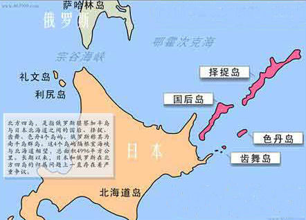 俄罗斯称俄日争议岛屿为南千岛群岛,包括齿舞岛、色丹岛、国后岛和择捉岛;日本称其为北方四岛。
