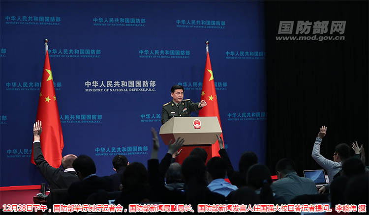 12月28日下午,国防部举行例行记者会,国防部新闻局副局长、国防部新闻发言人任国强大校答记者问。