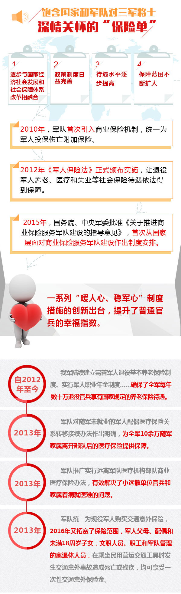 摘要:在国家和军队共同努力下,资金来源稳定可靠、法规制度日益健全、具有中国特色的军人保险制度正逐步完善。