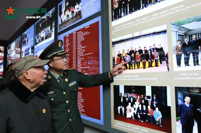 雷锋连长虞仁昌和第十八任雷锋班长一起在望城参观雷锋展览。谭卫兵摄