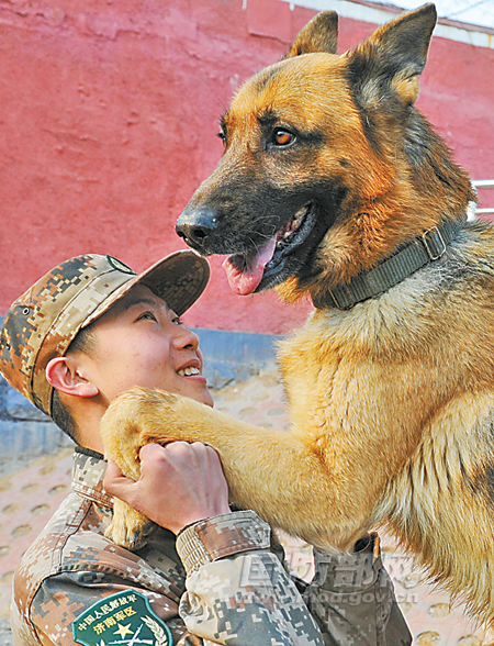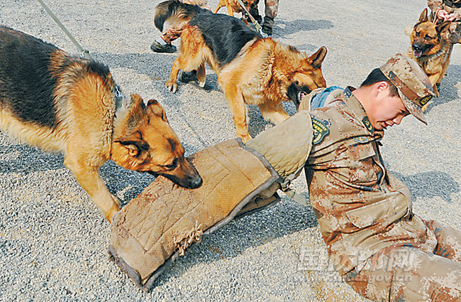 “袭!”训导员话音未落,只见军犬“小闪”闪电般扑向担任“假想敌”的助训员,透过“小闪”的凶猛扑咬,你能感受到军犬的血性虎气和严守指令的忠诚。这是3月31日,济南军区军犬队训练的一幕。