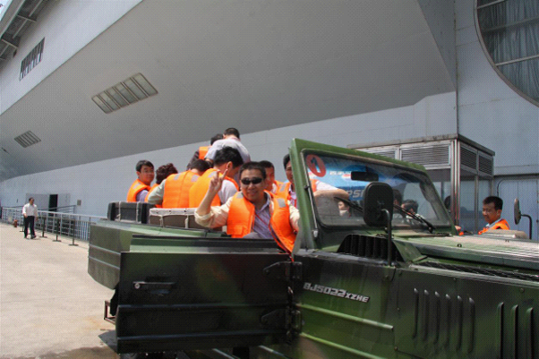 学员们在上海东方绿舟国防教育基地体验水陆两用输送车