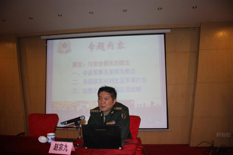著名的军事专家赵宗九教授在授课