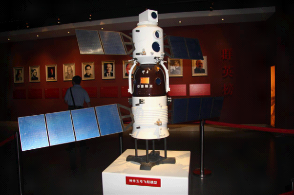 学员们在上海东方绿舟国防教育基地参观卫星模型
