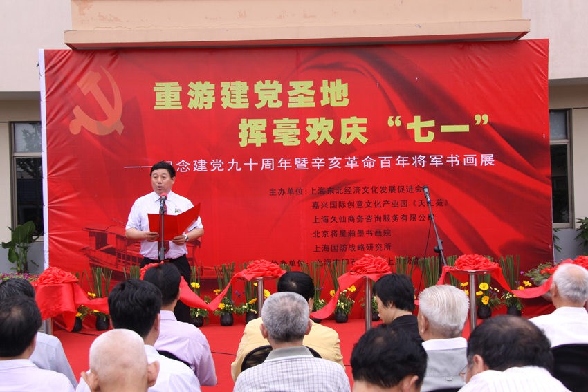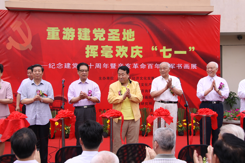 【本网讯】 在举国同庆党的90华诞之际,由上海国防战略研究所参与主办的“重游建党圣 地挥毫欢庆七一”活动日前在浙江省嘉兴南湖举办。一批德高望重的老领导、老将军、老艺术家近百人参加了这次纪念建党90周年书画展活动,同时重游革命圣地,挥毫欢庆党的生日。来宾们共同用精美书画作品讴歌赞美党的领导,反映经济社会发展成就,弘扬独具特色的红色文化。本次活动的举行大家一致反映具有特殊的意义。(金亮)