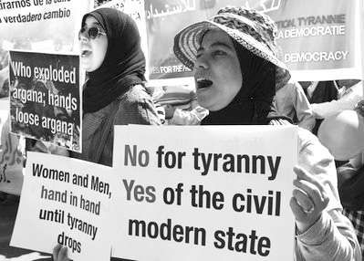 摩洛哥示威民众要求“结束独裁,建立民主的现代国家”。
